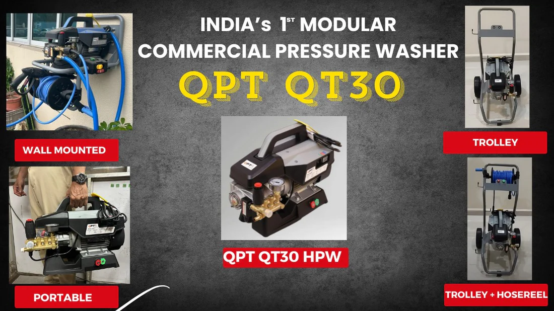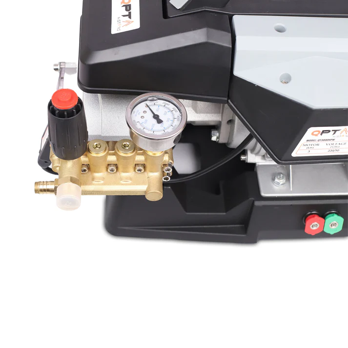 The  QT-30 Super Pressure Commercial Washer (3000HPW) is a powerful and reliable cleaning solution designed for commercial and heavy-duty applications. Built with a high-performance induction motor and heavy-duty brass pump, this pressure washer delivers strong water pressure to remove stubborn dirt, grease, and grime from a variety of surfaces.